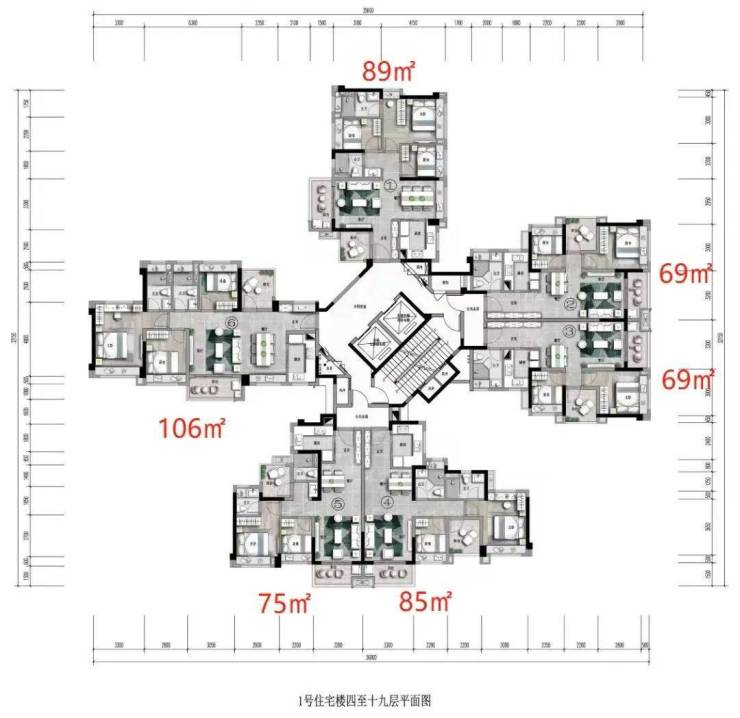 楼层状况:共规划23栋高层住宅,1-16栋为11-18层的小高层住宅,17/19-22栋为25-27层的高层住宅,24-25栋为24-25层的安居房。主力户型为建面约105-128㎡三至四房。