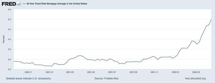 然而,随着美联储开启加息周期,抵押贷款利率飙升,上周五30年期固定房贷平均利率10年来首次升至5%,并且仍在继续走高,加上房价巨高不下,住房负担能力快速恶化。