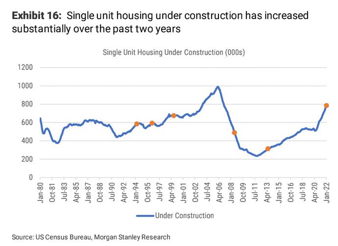 紧张的库存水平给购房者带来了压力,但在2022年剩余的时间,可能看到新增库存方面一些变化。在建房屋数量已达到2006年12月以来的较高水平,尽管库存较为紧张,随着这些房屋在年内完工,额外的供应将会缓解房价上涨压力。