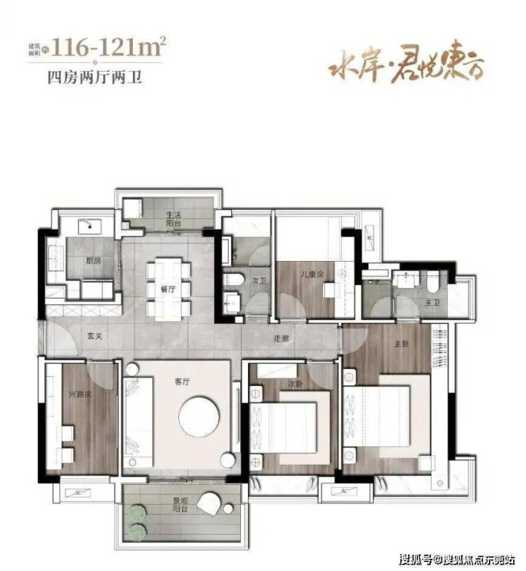 建面116-121㎡四房,宽景双阳台设计,不仅江景和园景都能一览无余,还做到南北对流设计,任何时候居家都清爽通透。