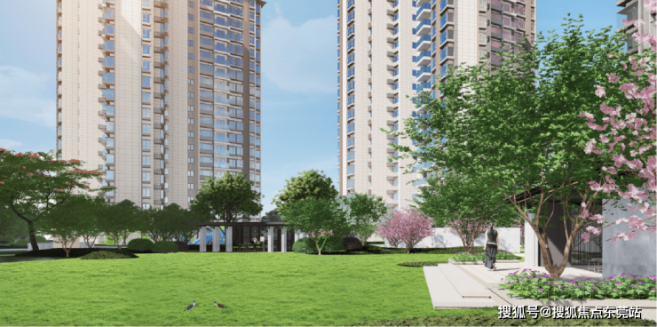 整个社区占地5.46万㎡,容积率仅2.2,规划14栋高层住宅,实际绿化率高达42%。