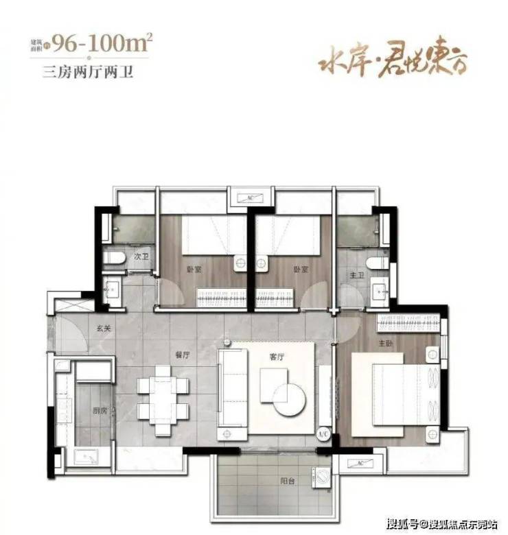 建面96-100㎡三房,更是格局方正,采用横厅设计,四开间朝南,功能性齐全,全房间带飘窗设计,可以预想入住后,室内明亮通透,视野开阔。