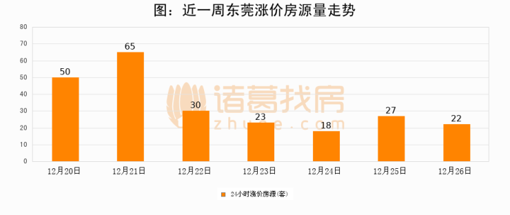 根据诸葛找房数据显示,东莞24小时涨价房源量为22套,较12月25日减少5套,环比下降18.5%。与此同时,涨价房源占比小幅回落,对于购房者来说是一个入市窗口期,购房者可抓住时机入市。