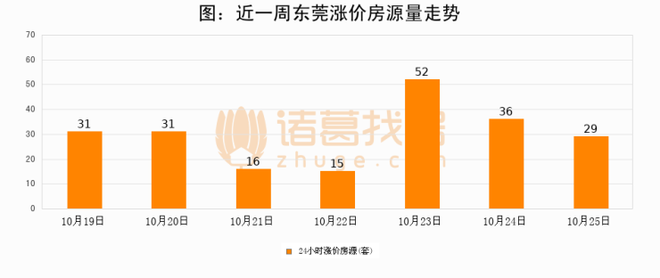 根据诸葛找房数据显示,东莞24小时涨价房源量为29套,较10月24日减少7套,环比下降19.4%。与此同时,涨价房源占比小幅回落,对于购房者来说是一个入市窗口期,购房者可抓住时机入市。