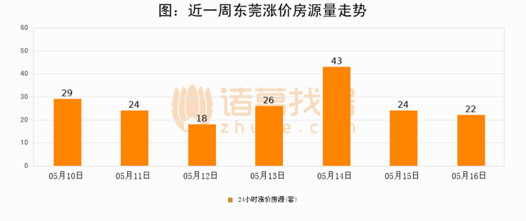 根据诸葛找房数据显示,东莞24小时涨价房源量为22套,较05月15日减少2套,环比下降8.3%。与此同时,涨价房源占比小幅回落,对于购房者来说是一个入市窗口期,购房者可抓住时机入市。