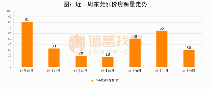 根据诸葛找房数据显示,东莞24小时涨价房源量为30套,较12月21日减少35套,环比下降53.8%。与此同时,涨价房源占比小幅回落,对于购房者来说是一个入市窗口期,购房者可抓住时机入市。