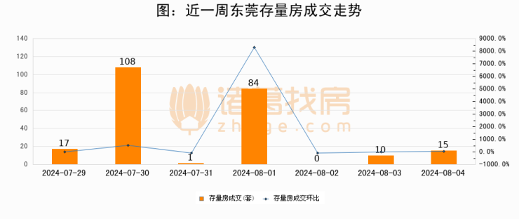 从存量房来看,2024年08月04日东莞存量房单日成交15套,比昨日增加5套,环比上涨50%。从近一周存量房成交来看,东莞存量房日均成交套数为33套,08月04日单日成交15套,低于近一周平均水平54.5%。