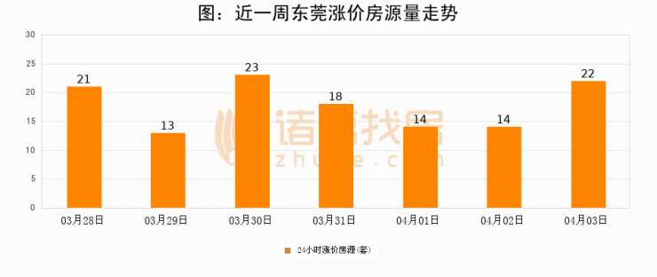 根据诸葛找房数据显示,东莞24小时涨价房源量为22套,较04月02日增加8套,环比上涨57.1%。与此同时,涨价房源占比小幅扩大,业主信心有所提升。