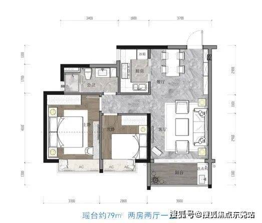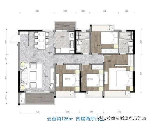 项目共开5幢,主力户型为79㎡两房、99-102㎡三房、125-133㎡四房。项目户型均为两梯四户,产品覆盖了市场上主流的3-4房产品。户型朝向正南偏东,通透采光,南北通风,格局方正。