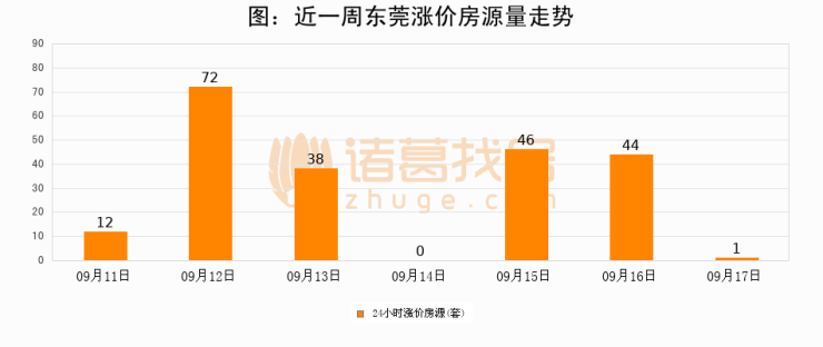根据诸葛找房数据显示,东莞24小时涨价房源量为1套,较09月16日减少43套,环比下降97.7%。与此同时,涨价房源占比小幅回落,对于购房者来说是一个入市窗口期,购房者可抓住时机入市。