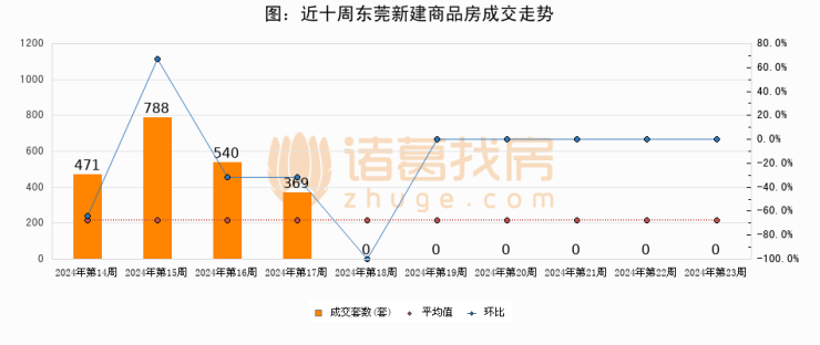 进入2024年第23周(06月03日-06月09日),东莞新建商品房成交0套,较上周持平