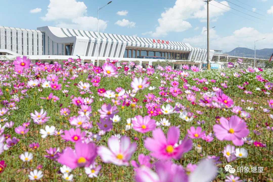 东莞南站站前公园,大片格桑花盛开,在冬日暖阳中微微招展,景色怡人。