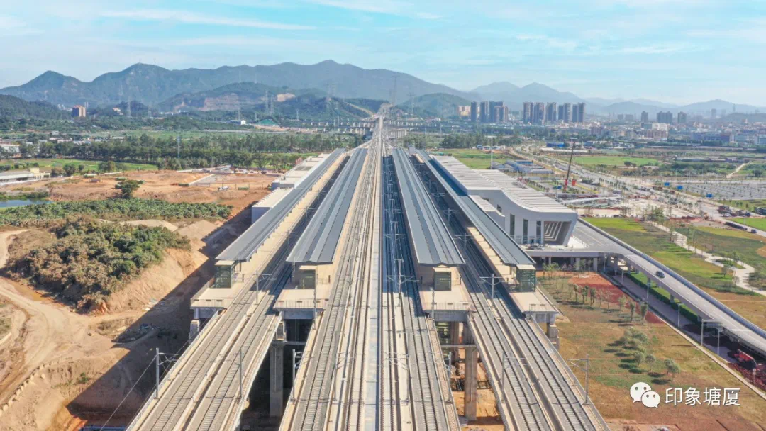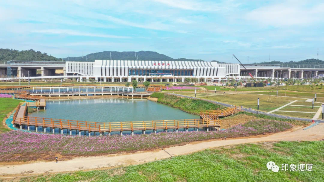 据悉,东莞南站是赣深高铁东莞段少有站点,位于塘厦林村社区东红路附近,规划4台8线,站房面积28400平方米,规模在赣深铁路新建车站中排第二大。
