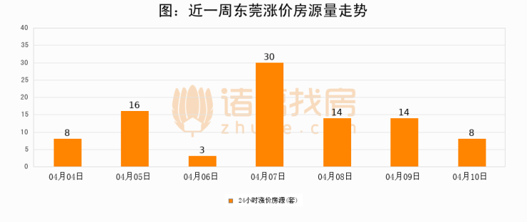 根据诸葛找房数据显示,东莞24小时涨价房源量为8套,较04月09日减少6套,环比下降42.9%。与此同时,涨价房源占比小幅回落,对于购房者来说是一个入市窗口期,购房者可抓住时机入市。