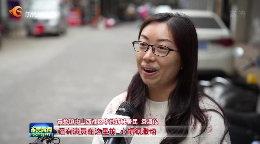 石龙镇中山西社区华景新城居民袁淑仪:“每天上下班都能看到摄影组、演员在这里拍,心情很激动。”