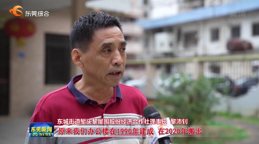 东城街道堑头黎屋围股份经济合作社理事长黎沛钊:“原来我们办公楼在1990年建成,在2020年搬出,搬出是为了城市发展的需要,实现三旧改造,刚好建党一百周年其中一部电影,在我们村全部群众大力支持配合下顺利拍摄完成。”