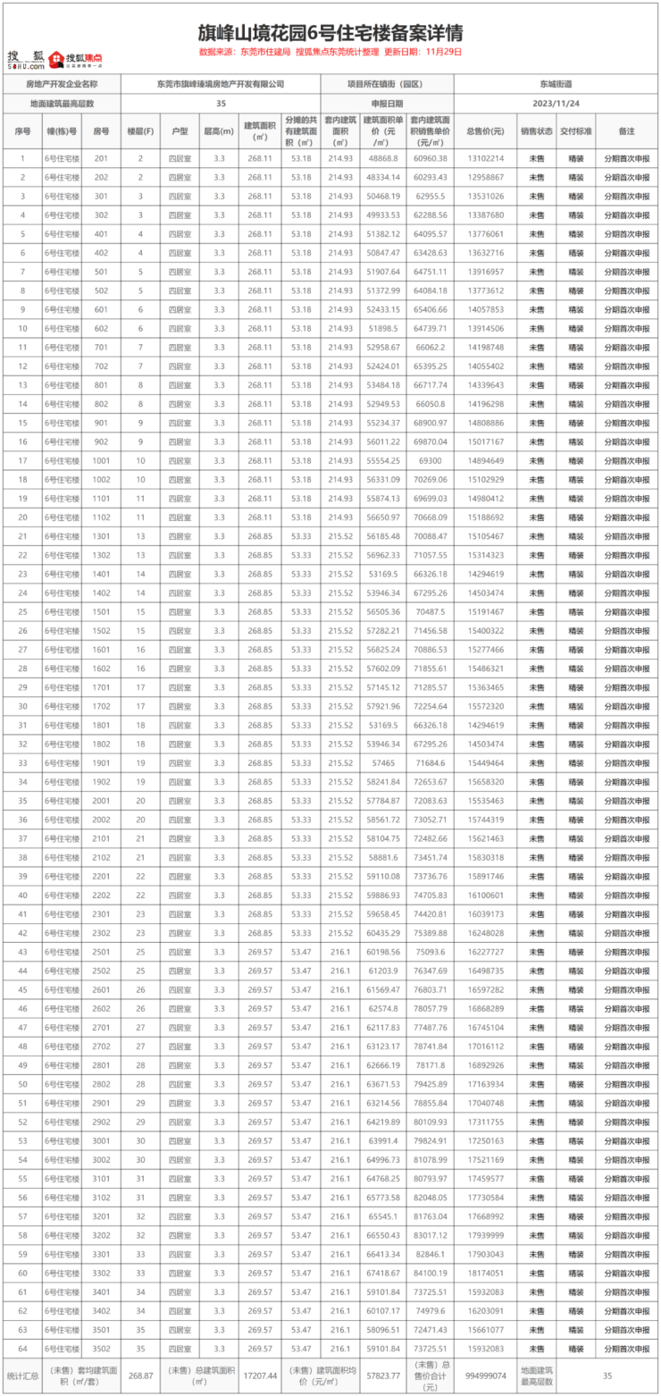 瑧山境6号楼备案详情: