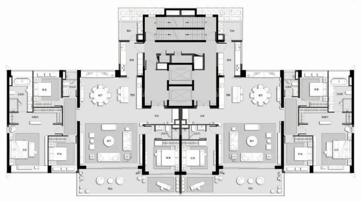 同时该户型装标非常高,大量使用国外进口名奢石材铺陈,包括爱马仕灰大理石、宝格丽纹岩板等,墙体木饰面与汤臣一品同款。更多装标细节,可点击搜狐君往期文章《一境望山纳黄旗!约270㎡瑧系山居,装标细节首次曝光!》了解。