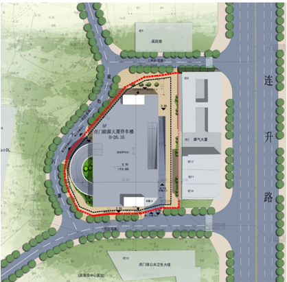 虎门能源大厦停车楼项目紧邻虎门大道和连升北路等城市主干道,周边交通繁忙,同时该区域靠近东莞市滨海湾中心医院和虎门镇公共卫生大楼等医疗机构,加上周边老旧小区多,停车位需求较大。