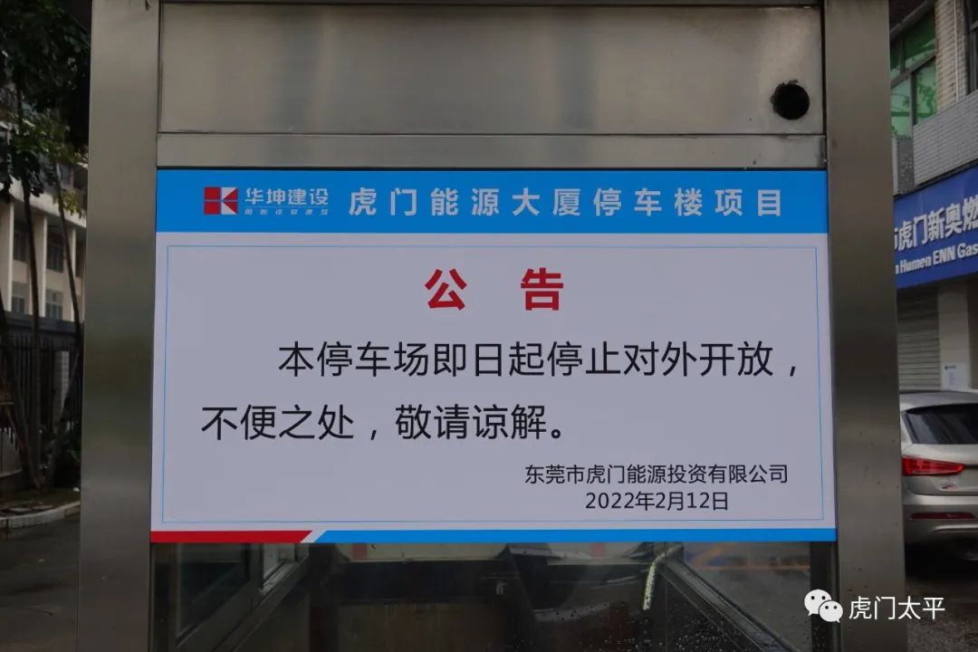 施工期间,虎门能源大厦临时停车场暂停对外开放,请前来附近就医或办事群众绕到周边停车场停车,切勿跑空哦!