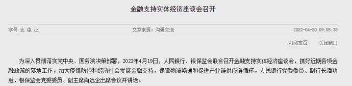 人民银行网站4月20日消息,2022年4月19日,人民银行、银保监会联合召开金融支持实体经济座谈会。会议强调,要用好用足各项金融政策,主动靠前服务实体经济;及时优化信贷政策,灵活调整受疫情影响人群个人住房贷款还款计划。
