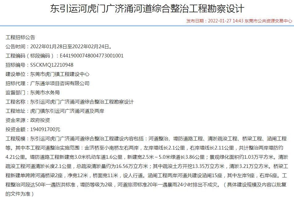 另悉,广济涌下游小南桥至S3广深沿江高速桥段4.32公里河道也已纳入磨碟河片区水利工程,计划投资2.6亿元进行综合整治。