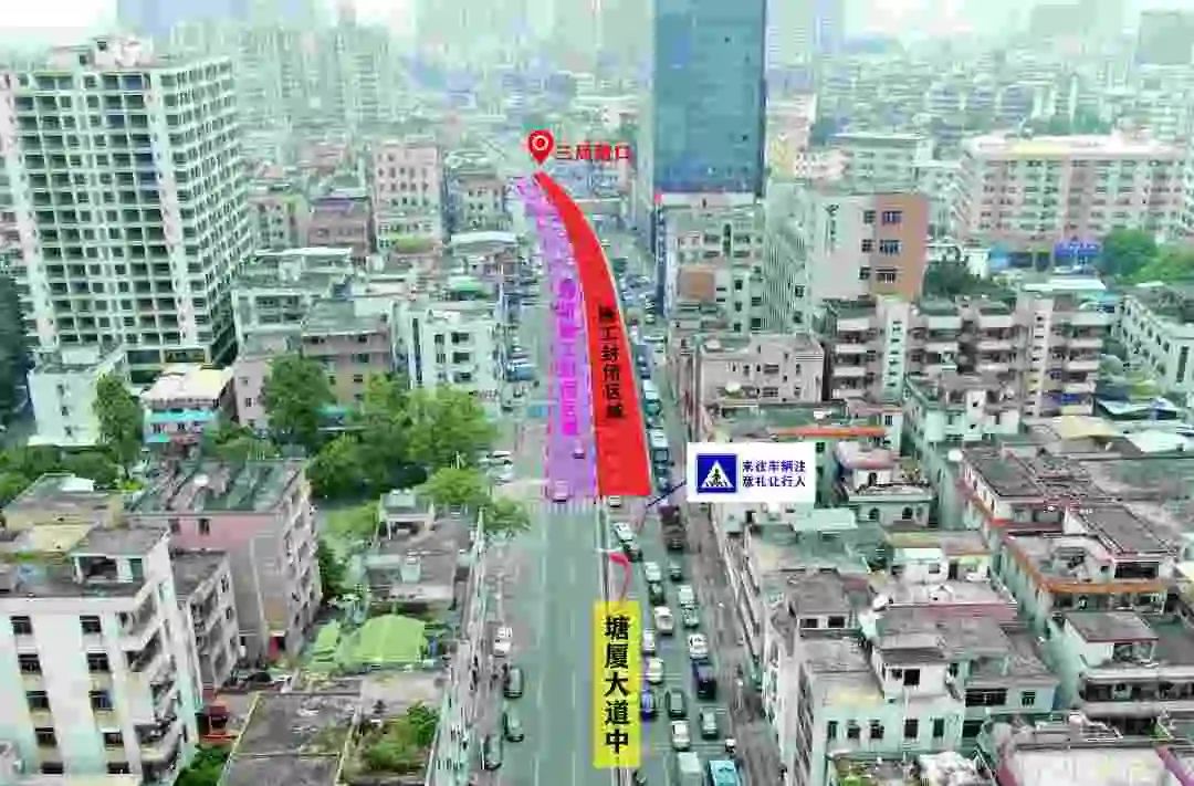 随着工程的推进,将逐步围蔽车道,届时塘厦大道与迎宾大道交叉口至幸福广场路段,道路两侧各留一个车道保持通行。