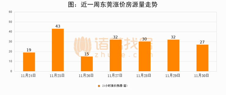 根据诸葛找房数据显示,东莞24小时涨价房源量为27套,较11月29日减少5套,环比下降15.6%。与此同时,涨价房源占比小幅回落,对于购房者来说是一个入市窗口期,购房者可抓住时机入市。