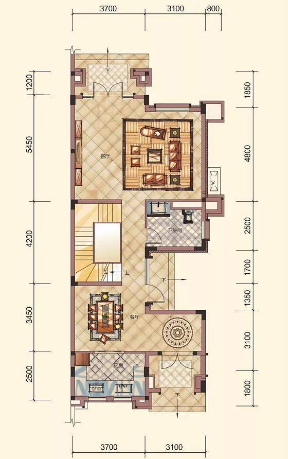5.4米开间,3.8米高大客厅,宽阔的尺度,使每个家庭成员都能享有独立私密的空间。
