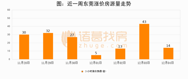 根据诸葛找房数据显示,东莞24小时涨价房源量为14套,较12月03日减少29套,环比下降67.4%。与此同时,涨价房源占比小幅回落,对于购房者来说是一个入市窗口期,购房者可抓住时机入市。