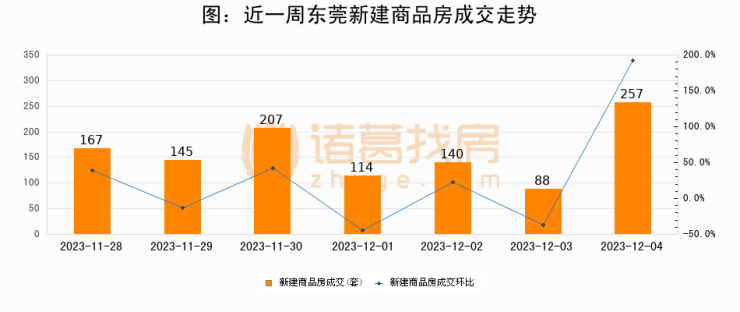 【东莞成交日报】12月04日新房成交257套、二手房104套;涨价房源14套