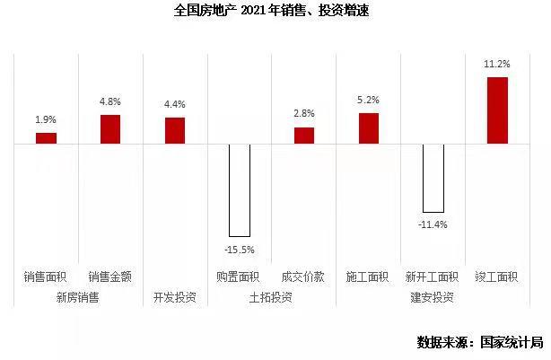 1月17日,国家统计局发布数据,2021年全国商品房销售额18.2万亿元,同比增长4.8%;商品房销售面积17.9亿平方米,同比增长1.9%;房地产开发投资14.76万亿元,同比增长4.4%。