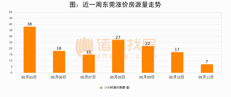根据诸葛找房数据显示,东莞24小时涨价房源量为7套,较08月10日减少10套,环比下降58.8%。与此同时,涨价房源占比小幅回落,对于购房者来说是一个入市窗口期,购房者可抓住时机入市。