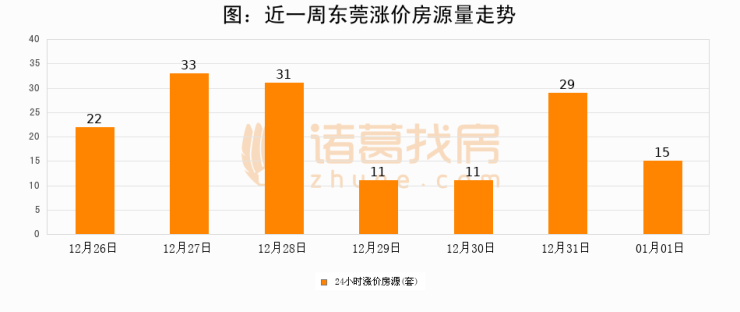 根据诸葛找房数据显示,东莞24小时涨价房源量为15套,较12月31日减少14套,环比下降48.3%。与此同时,涨价房源占比小幅回落,对于购房者来说是一个入市窗口期,购房者可抓住时机入市。