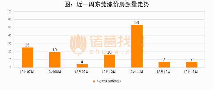 根据诸葛找房数据显示,东莞24小时涨价房源量为7套,较12月12日持平。