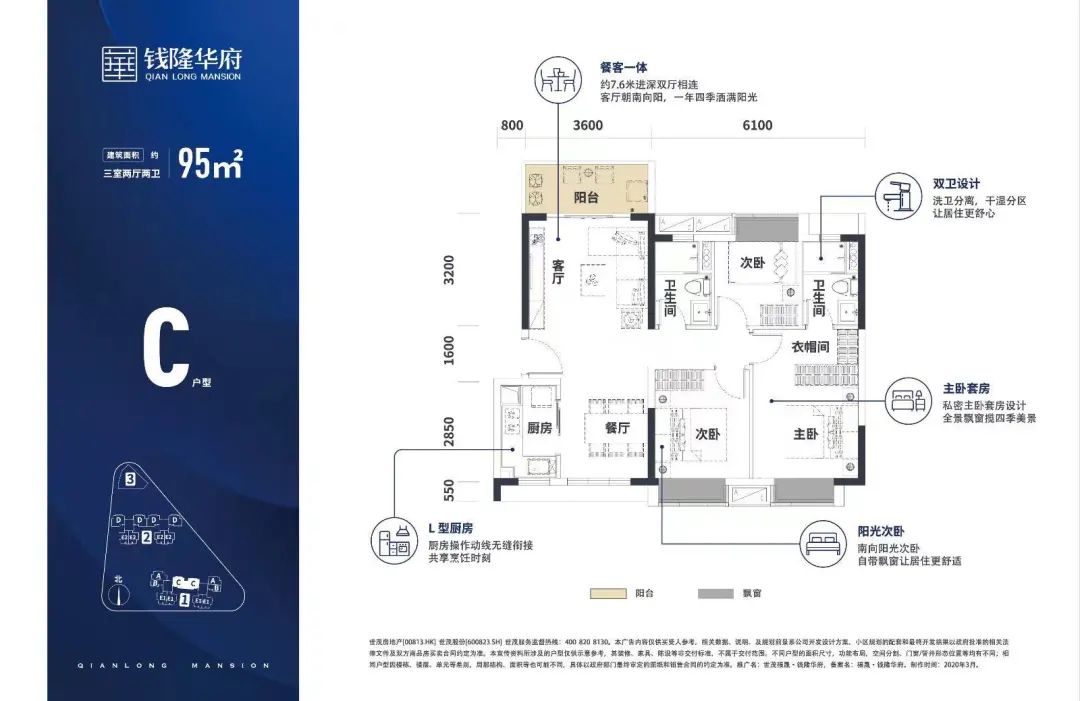 项目占地约2.11万㎡,总建面约6.14万㎡,主推建面约94-121㎡三四房和建面约143-170㎡别墅产品。