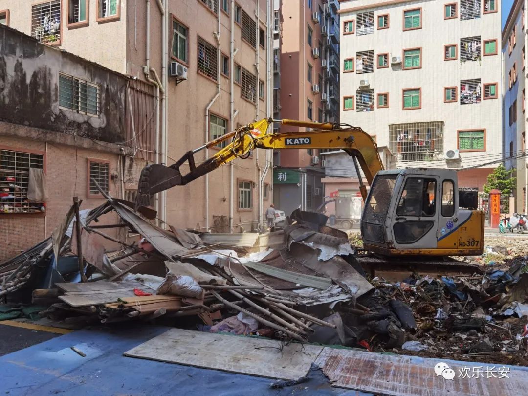 记者新民社区新丰路一巷13号看到,挖掘机已经进场作业,正在拆除乱搭建的窝棚,工人也正忙着清除杂草和垃圾物。