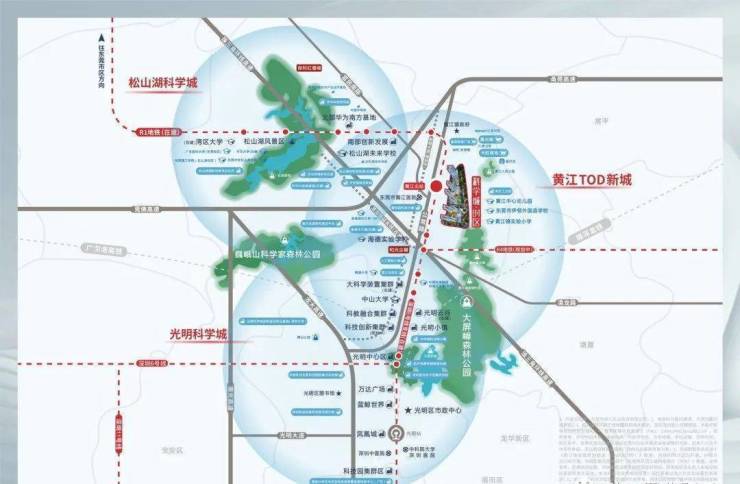 项目所处区域毗邻莞深两个高新科技产业区—松山湖科学城(东莞),光明科学城(深圳),是松山湖科学城规划的莞深科技合作成果转化区,是两大科学城人才和产业沟通的重要枢纽,也将持续承接双科学城利好。