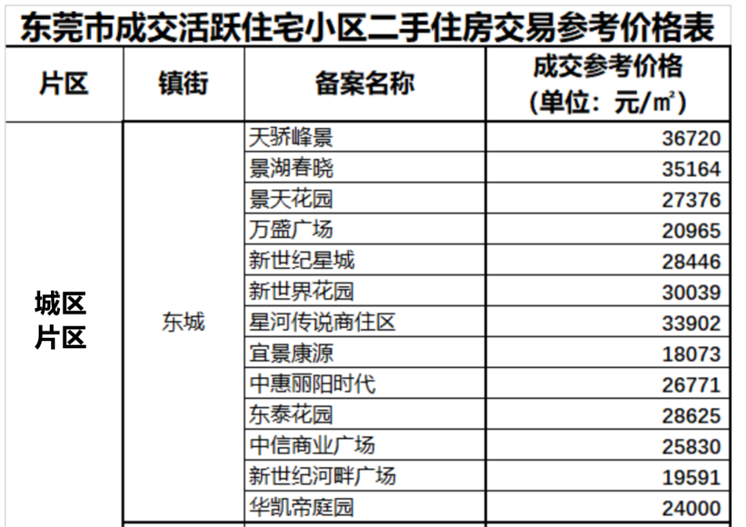 △东城成交活跃住宅小区二手房参考价格一览