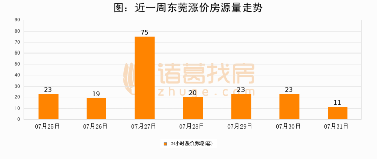 根据诸葛找房数据显示,东莞24小时涨价房源量为11套,较07月30日减少12套,环比下降52.2%。与此同时,涨价房源占比小幅回落,对于购房者来说是一个入市窗口期,购房者可抓住时机入市。