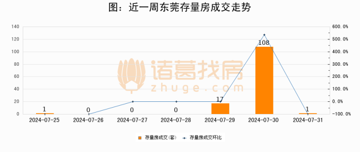 从存量房来看,2024年07月31日东莞存量房单日成交1套,比昨日减少107套,环比下降99.1%。从近一周存量房成交来看,东莞存量房日均成交套数为18套,07月31日单日成交1套,低于近一周平均水平94.4%。