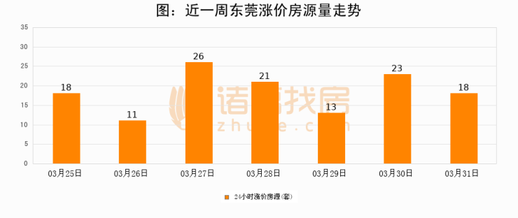 根据诸葛找房数据显示,东莞24小时涨价房源量为18套,较03月30日减少5套,环比下降21.7%。与此同时,涨价房源占比小幅回落,对于购房者来说是一个入市窗口期,购房者可抓住时机入市。