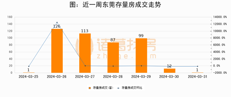 从存量房来看,2024年03月31日东莞存量房单日成交1套,比昨日减少11套,环比下降91.7%。从近一周存量房成交来看,东莞存量房日均成交套数为62套,03月31日单日成交1套,低于近一周平均水平98.4%。
