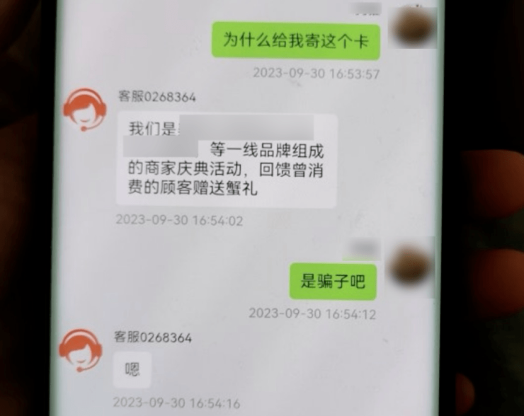 近日,“蟹卡诈骗”登上了微博热搜,某地市民周女士在家收到一个不明快递,拨打快递单上的电话却无法接通,打开快递发现是一张大闸蟹兑换卡和一封自称某购物平台的致客户信,称为回馈用户随机赠送大闸蟹兑换卡,可以通过扫码提货。
