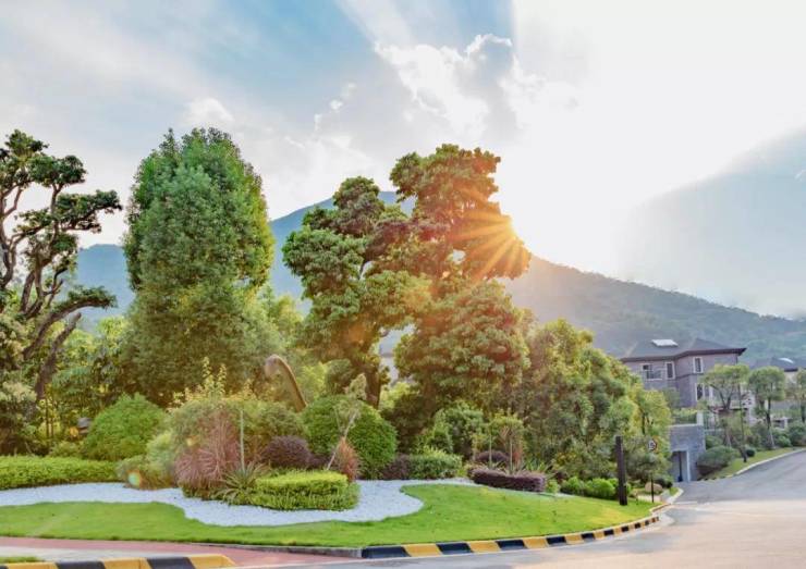 莲湖山庄依山而建,就势而为,让更多的原汁原味,依旧长在这山林间。前后排建筑都有明显的高差,通风对流。这样设计,进一步延展视野空间,又能增加私密性。