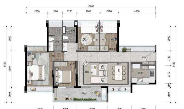 约6.5米超大阳台,联动次卧,生活空间更加灵动
