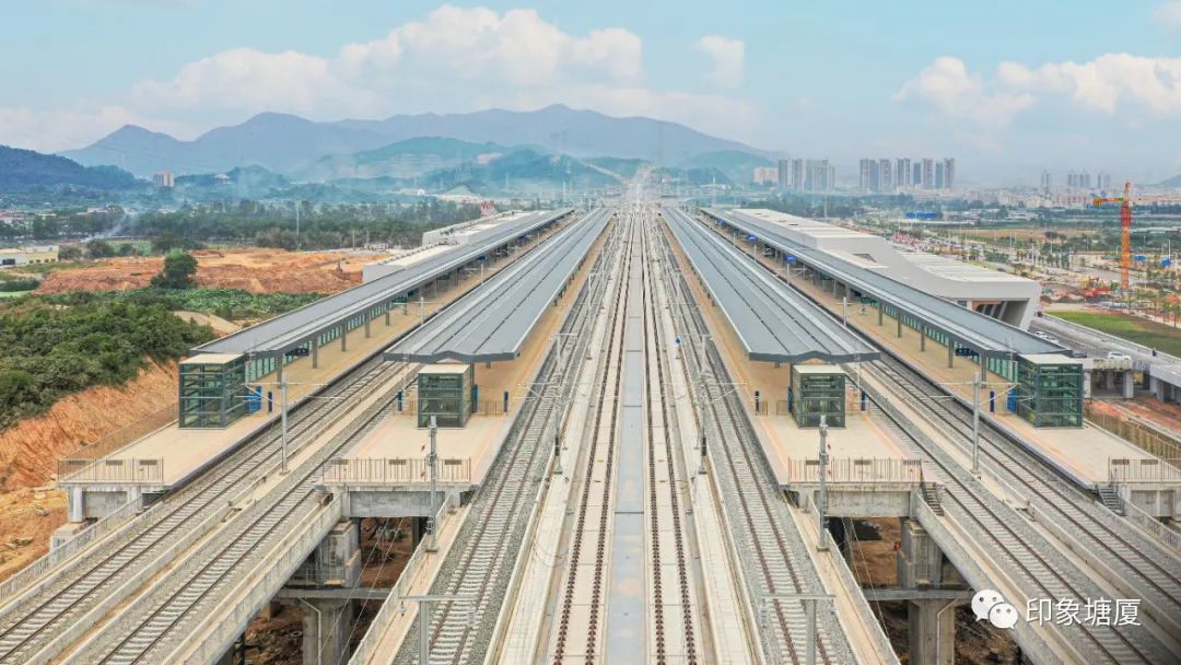据悉,东莞南站是赣深高铁东莞段少有站点,位于塘厦林村社区东红路附近,规划4台8线,站房面积28400平方米,规模在赣深铁路新建车站中排第二大。赣深高铁目前已完成冷滑试验、触网送电、热滑试验,江西段已进入运行试验阶段,广东段正联调联试,也将试运行。